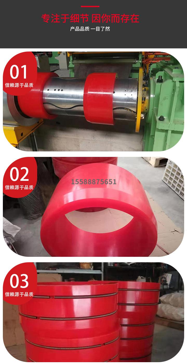 鋼卷內(nèi)徑由610增大到760所用的開(kāi)卷機(jī)增徑膠套,根據(jù)開(kāi)卷機(jī)自己卷筒尺寸,做了很好的配合,可以快速解決鋼卷內(nèi)徑變換的問(wèn)題,避免了鐵制墊圈的弊端,使用方便,增徑效果好,具體尺寸可詢(xún)15588875651為您解答!